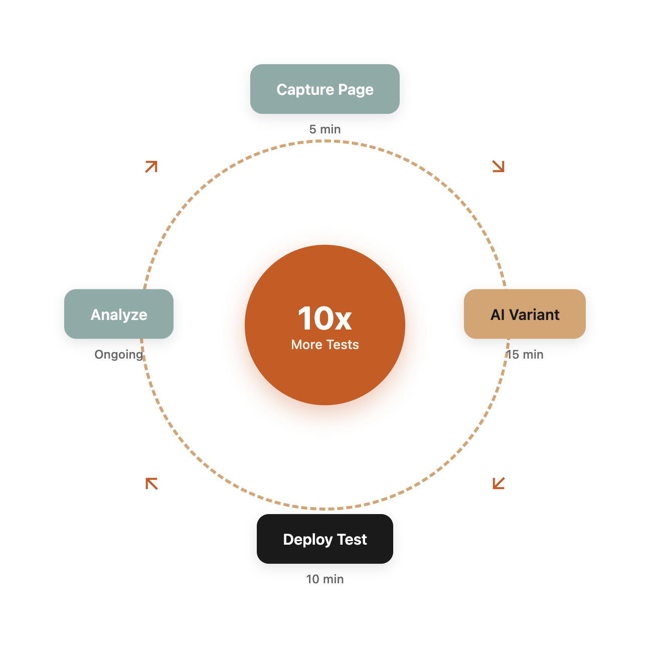 Your development team quotes 2-3 weeks to build an A/B test variant. By the time the test launches, the season has changed, the competitor has moved, and the opportunity has passed.