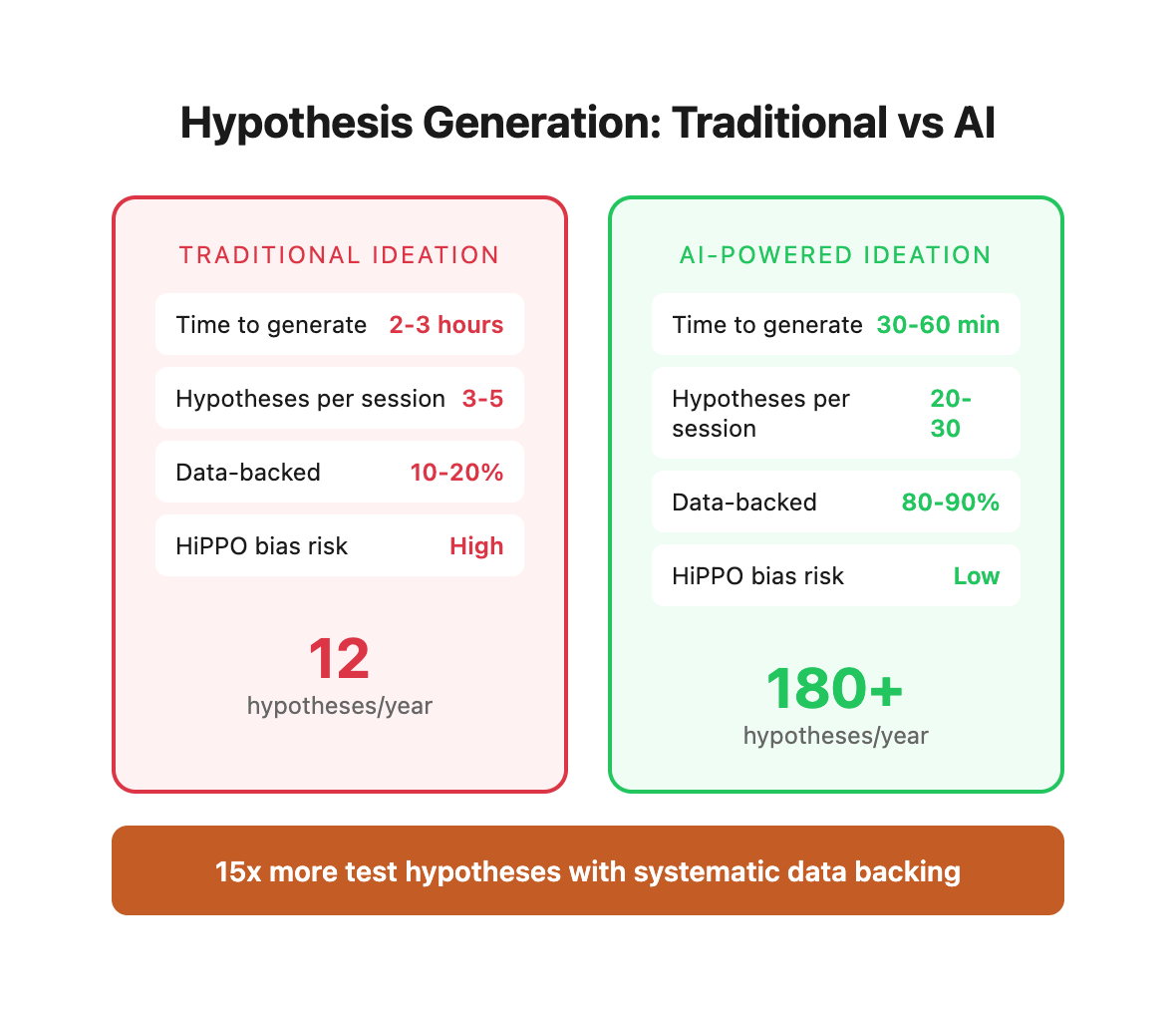 AI fundamentally changes the economics of test ideation. What previously required days of meetings and cross-functional alignment now takes 30-60 minutes of structured prompting.